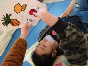 ボール転がしでは、ボールを目で追ったり、
